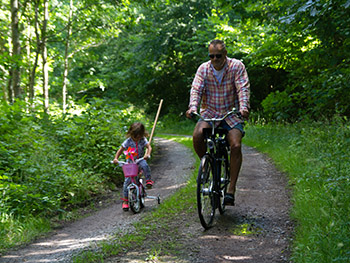 En kort sti fører ned til stranden.