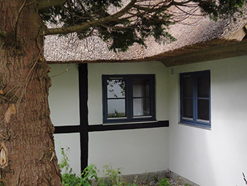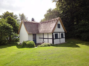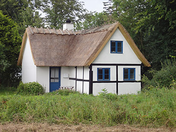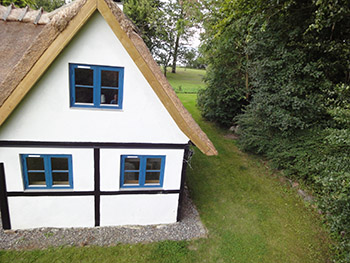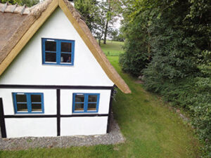 Strandhuset er fra 1880’erne, har bindingsværk og er tækket med stråtag. Huset er idyllisk beliggende direkte til Østersøen med egen strand. Fanefjord Skov og kornmarker støder direkte op til husets andre sider.